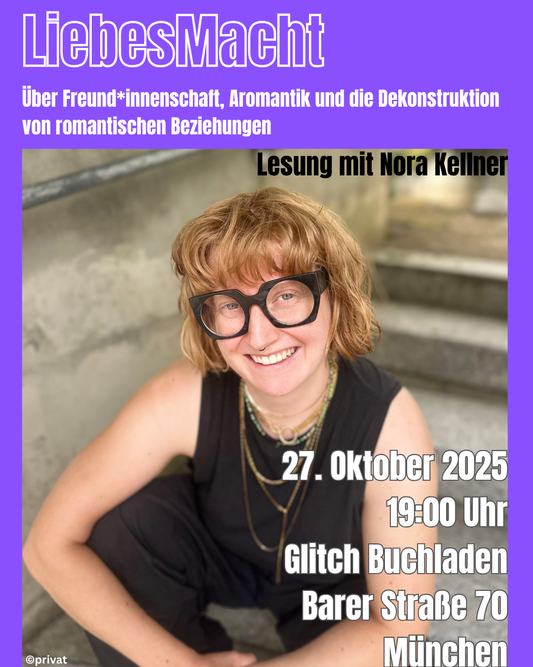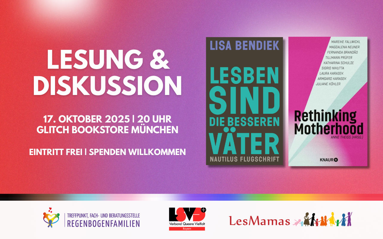 glitch bookstore Barerstr. 70, München, DeutschlandWie sieht Elternschaft aus, wenn wir uns von klassischen Rollenbildern lösen? Welche neuen Perspektiven eröffnen queere Familien auf Fürsorge, Verantwortung und gesellschaftliche Zuschreibungen? An diesem Abend stellen Lisa Bendiek („Lesben sind die besseren Väter“) und Anne Theiss („Rethinking Motherhood“) ihre Bücher vor. Gemeinsam gehen wir der Frage nach, wie vielfältig Elternschaft gedacht werden kann –...